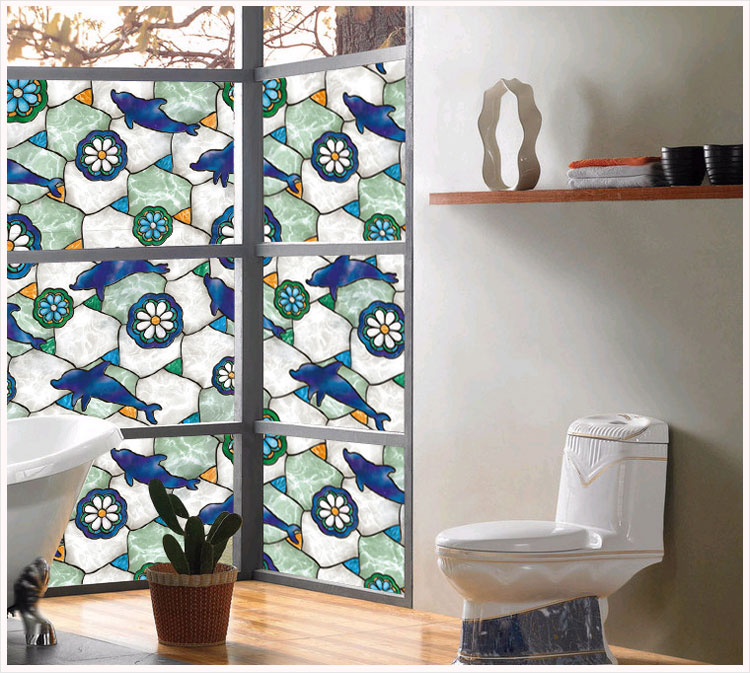 Anbeiyi adhesive free electrostatic glass film super thick window decal toilet window sticker dormitory bedroom sliding door transparent opaque cellophane European color painting new color painting orchid 75cm wide per meter price [picture price bran...