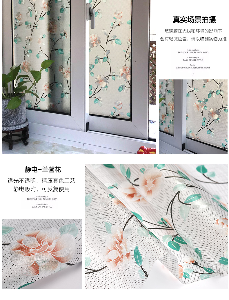 Ambay easy adhesive free electrostatic glass film frosted toilet bathroom college student dormitory dormitory office window stickers transparent opaque window decals sunscreen thickened clear water Hibiscus 75 cm wide x 2 m long [picture price brand...