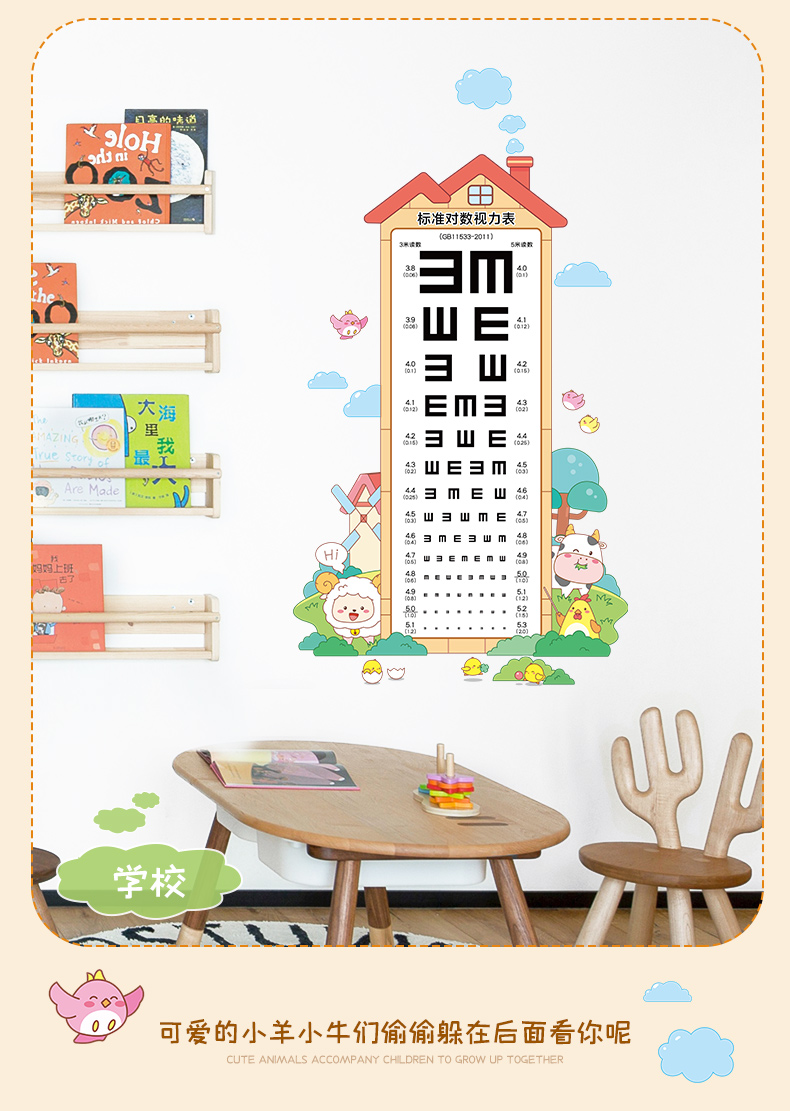 Aiyouwo vision chart wall chart family kids room kindergarten primary school classroom wall sticker decoration eye test self adhesive paper cartoon farm vision chart super large [picture price brand quotation] - Jingdong