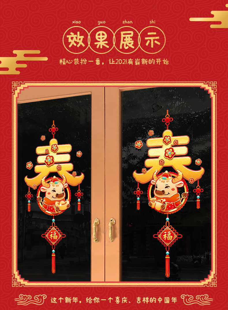 Aiyouwo new year stickers, year of the ox decoration, glass stickers, window decoration, spring festival scene layout, wall stickers, door stickers, spring ox Jiefu (a pair) big [picture price, brand quotation] - Jingdong