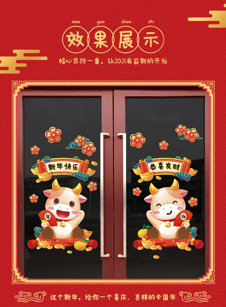 Aiyouwo 2021 year of the Ox New Year decorative glass door stickers Spring Festival layout window stickers window decals New Year pictures wallpaper Zhaocai niuqing new year (a pair) [picture price brand quotation] - Jingdong