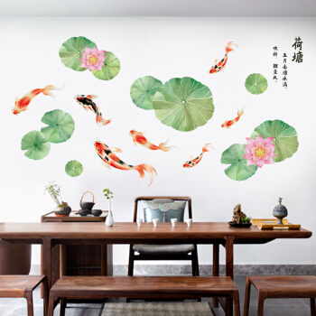 Chinese wind wall sticker lotus Koi living room TV background wall decoration sticker study creative wallpaper Yuyue lotus pond super large [picture price brand quotation] - Jingdong