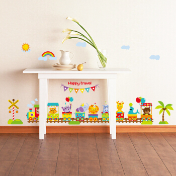 Aiyouwo kids room cartoon wall sticker cute creative decoration kindergarten living room bedroom REMOVABLE STICKER decoration small train skirting line [picture price brand quotation] - Jingdong
