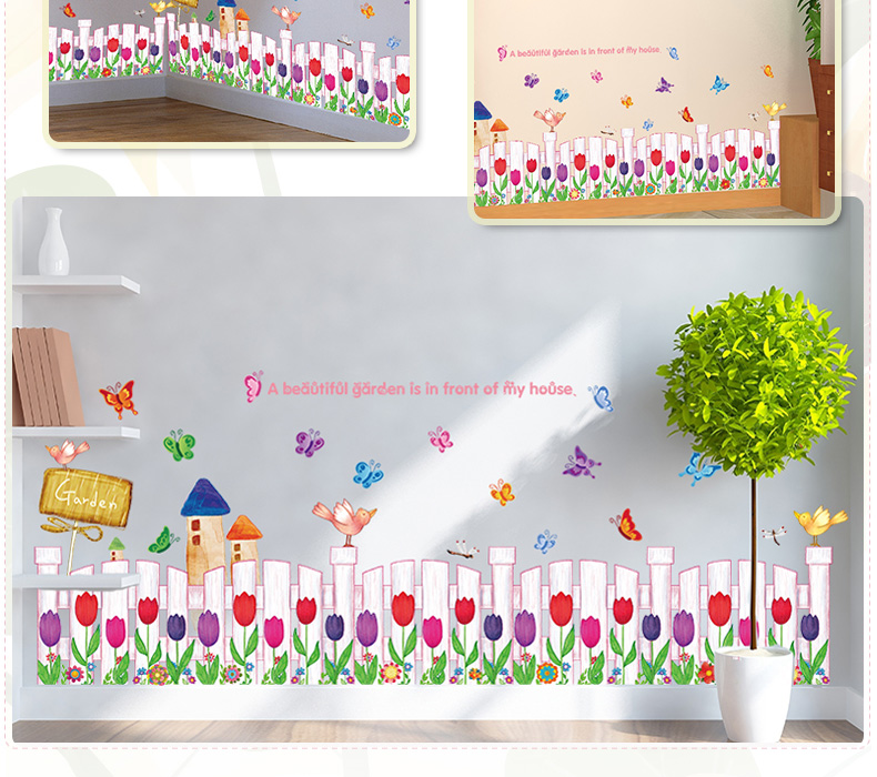 Aiyouwo skirting line waist line wall corner line corridor porch background waterproof glass tile wall paste REMOVABLE STICKER sticker B. butterfly grass skirting line