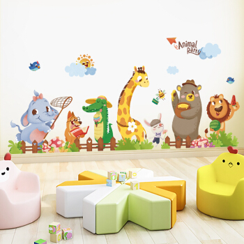 Cartoon animal wall stickers kids room decoration wallpaper self adhesive bedroom warm room layout wall wall stickers happy partner super large [picture price brand quotation] - Jingdong
