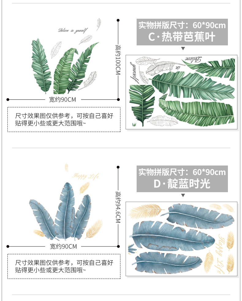 Wanghong ins bedroom warm background wall stickers, wardrobe stickers, door stickers, decoration, small room dormitory renovation supplies E-style - fresh botanical garden super large [picture price brand quotation] - Jingdong