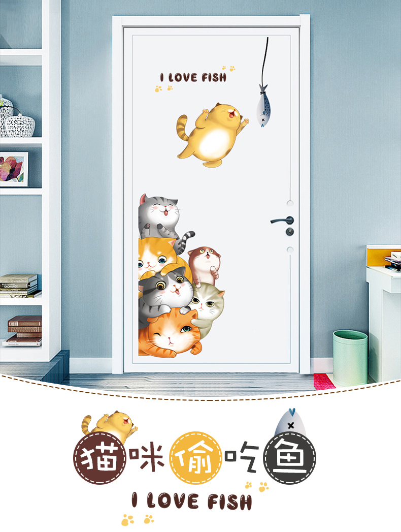 Aiyouwo kids room cartoon wall stickers kindergarten door stickers bedroom cabinet door stickers wall decoration orange large