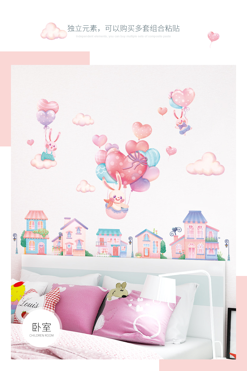 Warm and creative pink girl bedroom rental room renovation room layout bedside background wall decoration wall sticker self adhesive pink town small [picture price brand quotation] - Jingdong