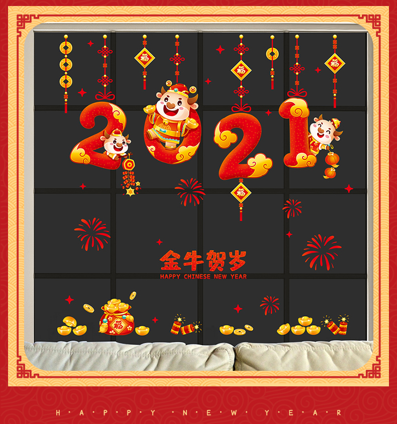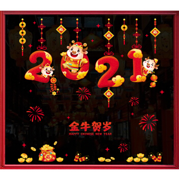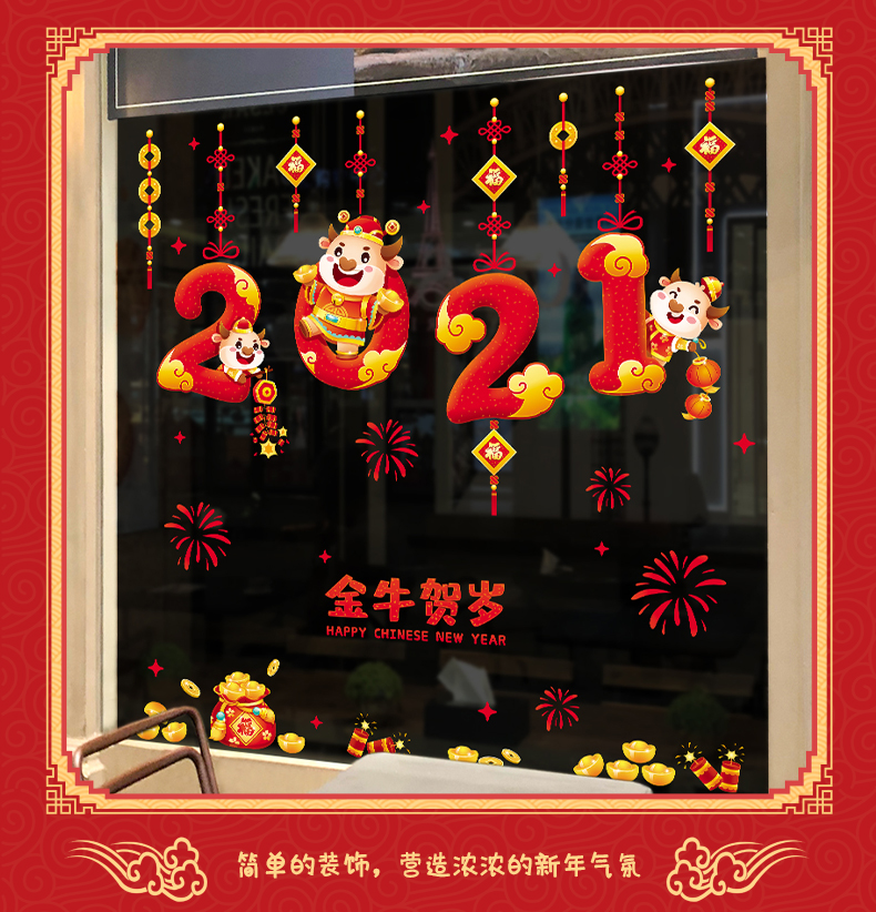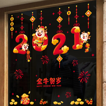 Aiyouwo New Year's year of the ox WALL STICKER GLASS STICKER decoration window decal Shop Spring Festival scene layout Jinniu auspicious New Year celebration [picture price brand quotation] - Jingdong