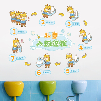 Cartoon toilet steps wall sticker baby toilet learning flow chart baby early education map toilet wall sticker kids toilet process super large [picture price brand quotation] - Jingdong
