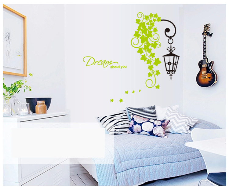 Orange swallow street lamp vine porch corridor Decorative Wall Sticker Removable bedroom living room study sticker European style chandelier green leaf potted plant sticker street lamp green leaf [picture price brand quotation] - Jingdong